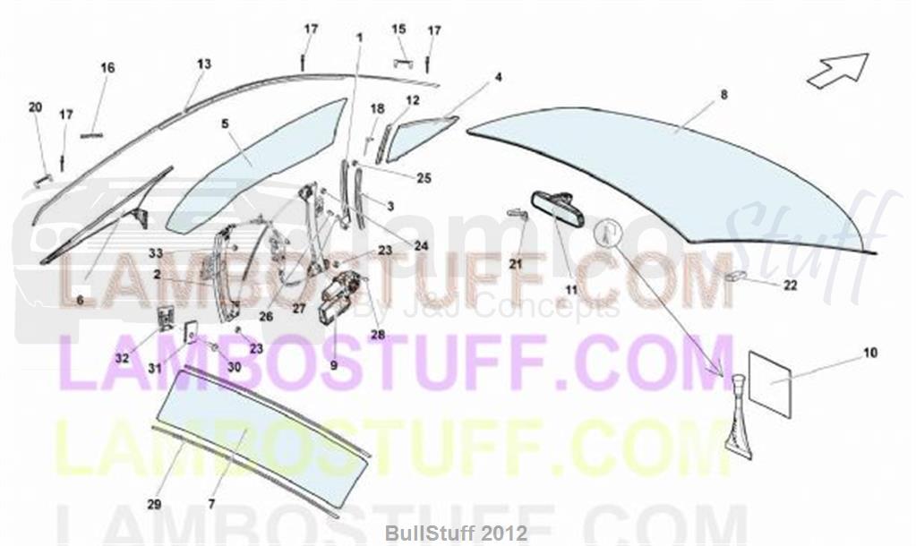 RIGHT SIDE DOOR WINDOW - GALLARDO COUPE